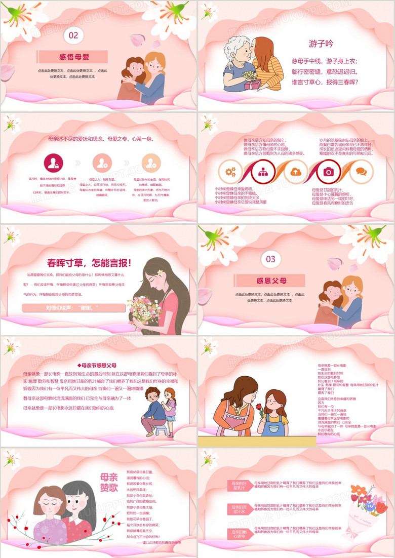 • 產(chǎn)品描述:粉色溫馨感恩母親節(jié)主題班會(huì)PPT模板